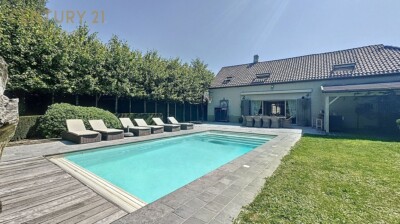 SOUS OPTION - DILBEEK – Gaëlle et Sylvain vous présentent cette somptueuse fermette entièrement rénovée en 2012 avec des matériaux haut de gamme, offrant 428 m² habitables, 4 chambres, un jardin paysager, une salle de billard, une piscine avec poolhouse et un double garage.
