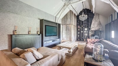 Extérieurs remarquables : terrasse de +/- 100 m² avec tente solaire, terrasse d’hiver avec cuisine extérieure et barbecue connecté à la piscine de 4x9m donnant sur le jardin de +/-700 m² avec aire de jeux spécifique pour enfants.
