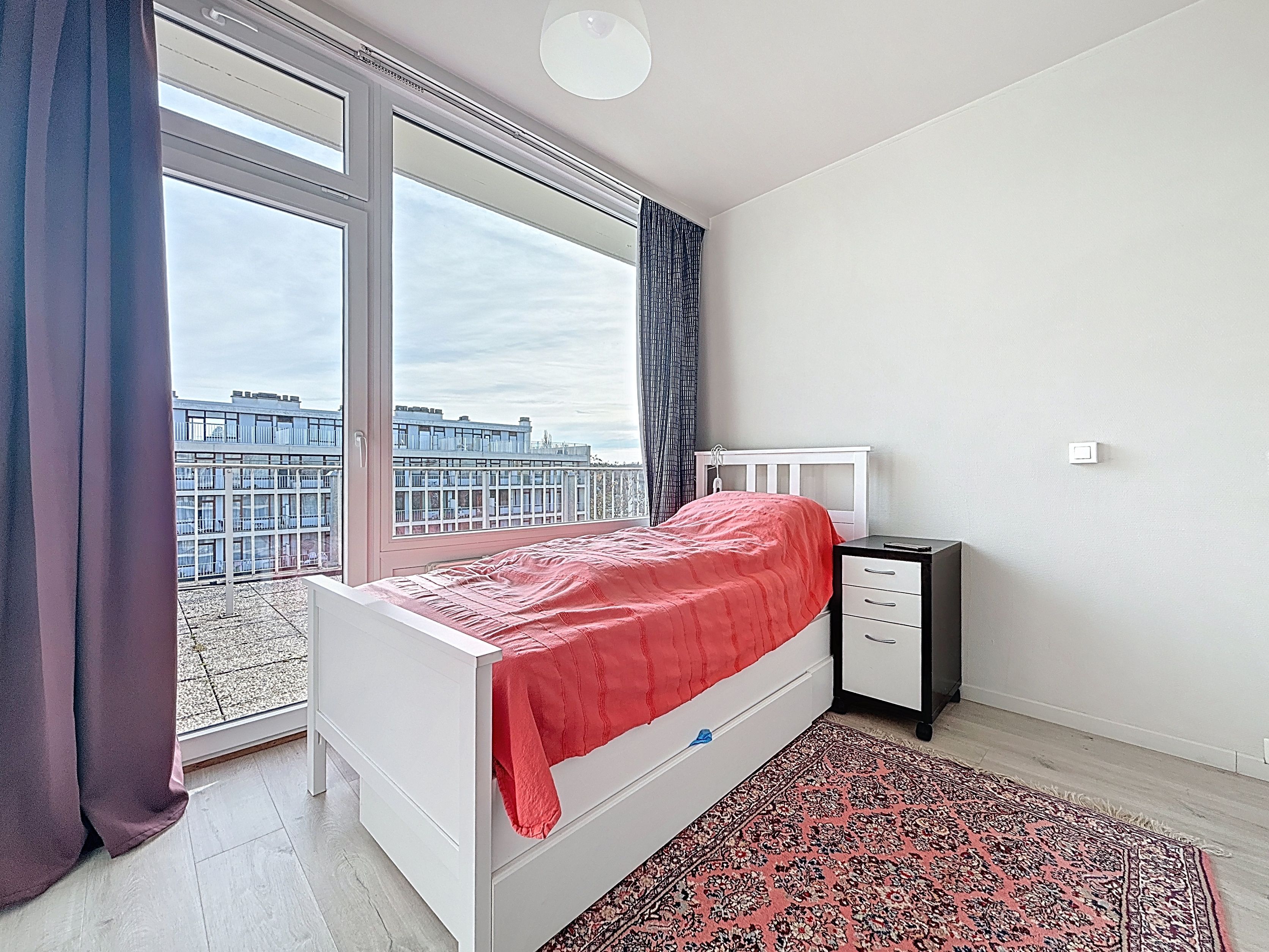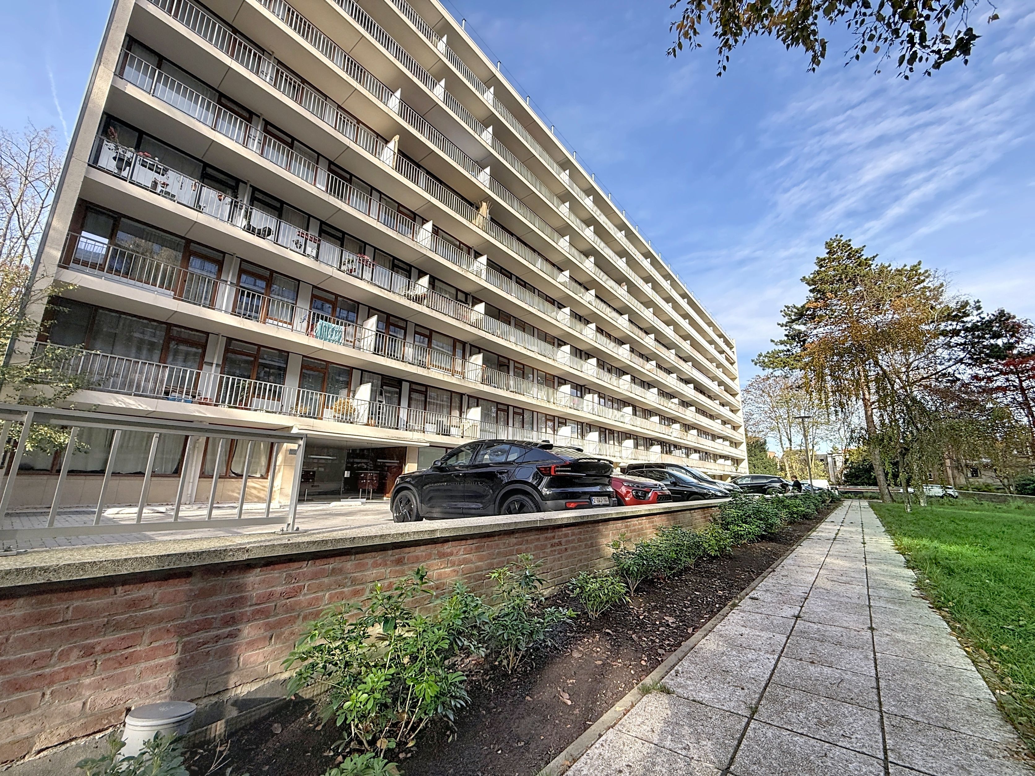 Situé au 9ᵉ et dernier étage d'un immeuble implanté dans un parc arboré privatif, cet appartement offre un cadre de vie exceptionnel, avec deux superbes terrasses, l’une exposée sud-ouest et l’autre nord-est, permettant de profiter pleinement de l’extérieur, de la luminosité et de la vue dégagée sur le quartier verdoyant d’Uccle.