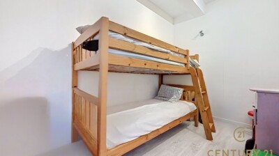 Le deuxième étage se compose d’un troisième espace de vie comprenant une chambre, une salle de douche, un séjour et des combles