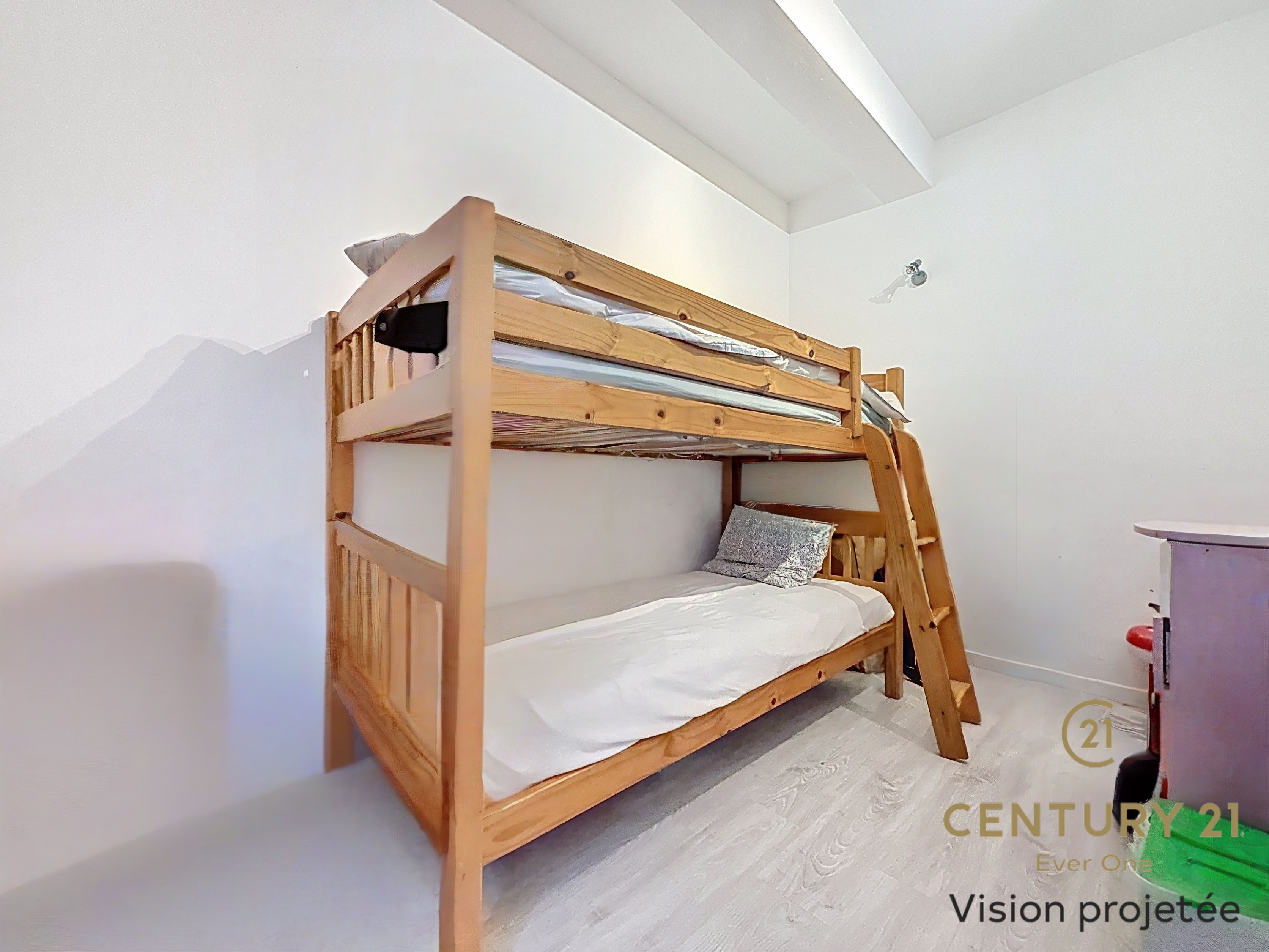 Le premier étage est composé de deux chambres, d’une salle de douche, d’un salon lumineux et d’une cuisine. Cet espace de vie est complété par une agréable terrasse, idéale pour profiter de l’extérieur en toute intimité.