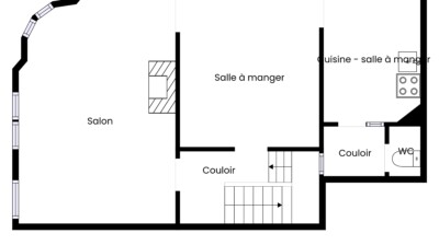 Le séjour situé à l’étage dispose en outre d’un petit balcon, apportant un agréable espace extérieur supplémentaire.